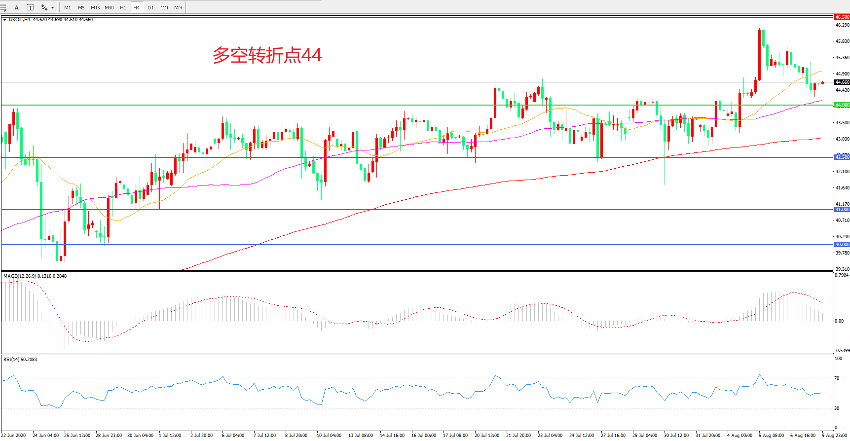 交易策略: 在44.00之上看涨,目标46.50 49.00