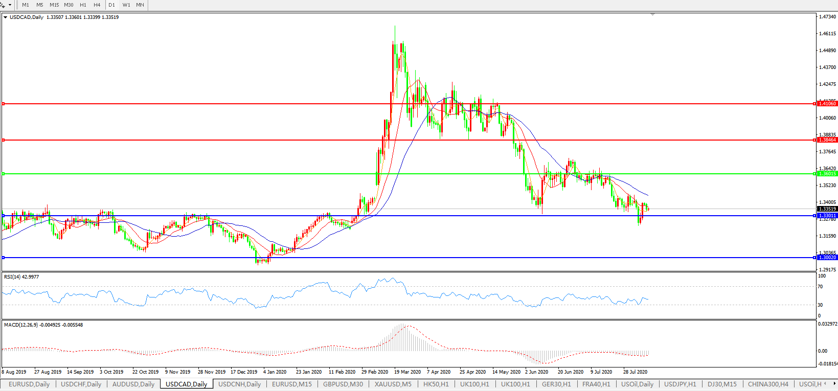 美元兑加元USDCAD 日线图: