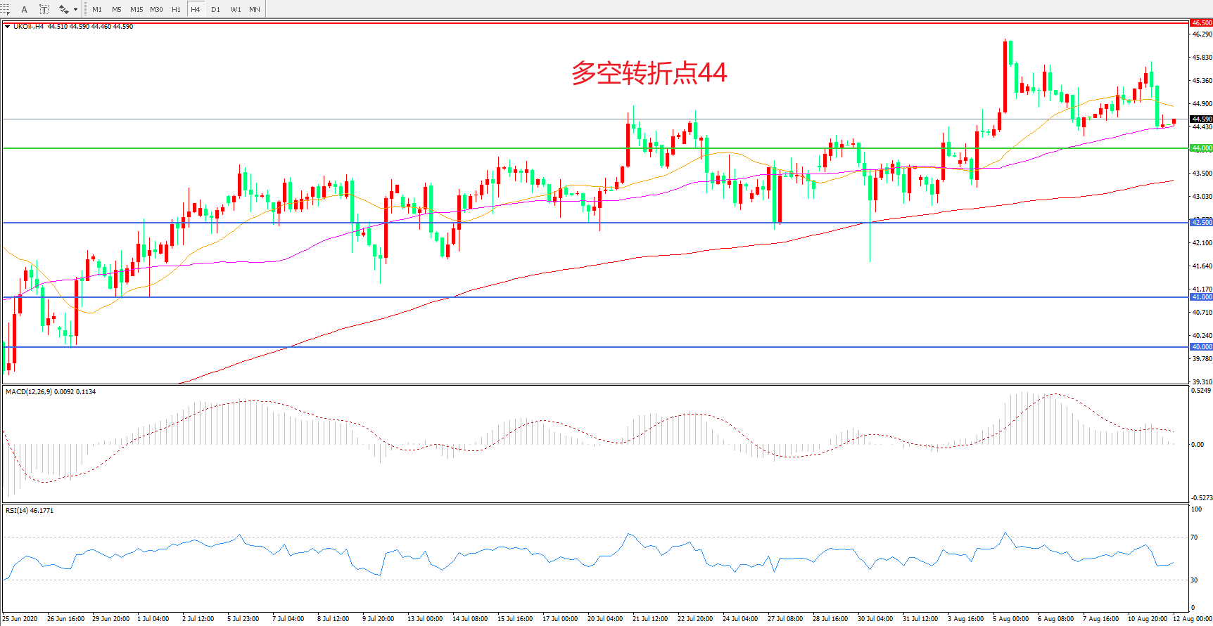 交易策略: 在44.00之上看涨,目标46.50 49.00