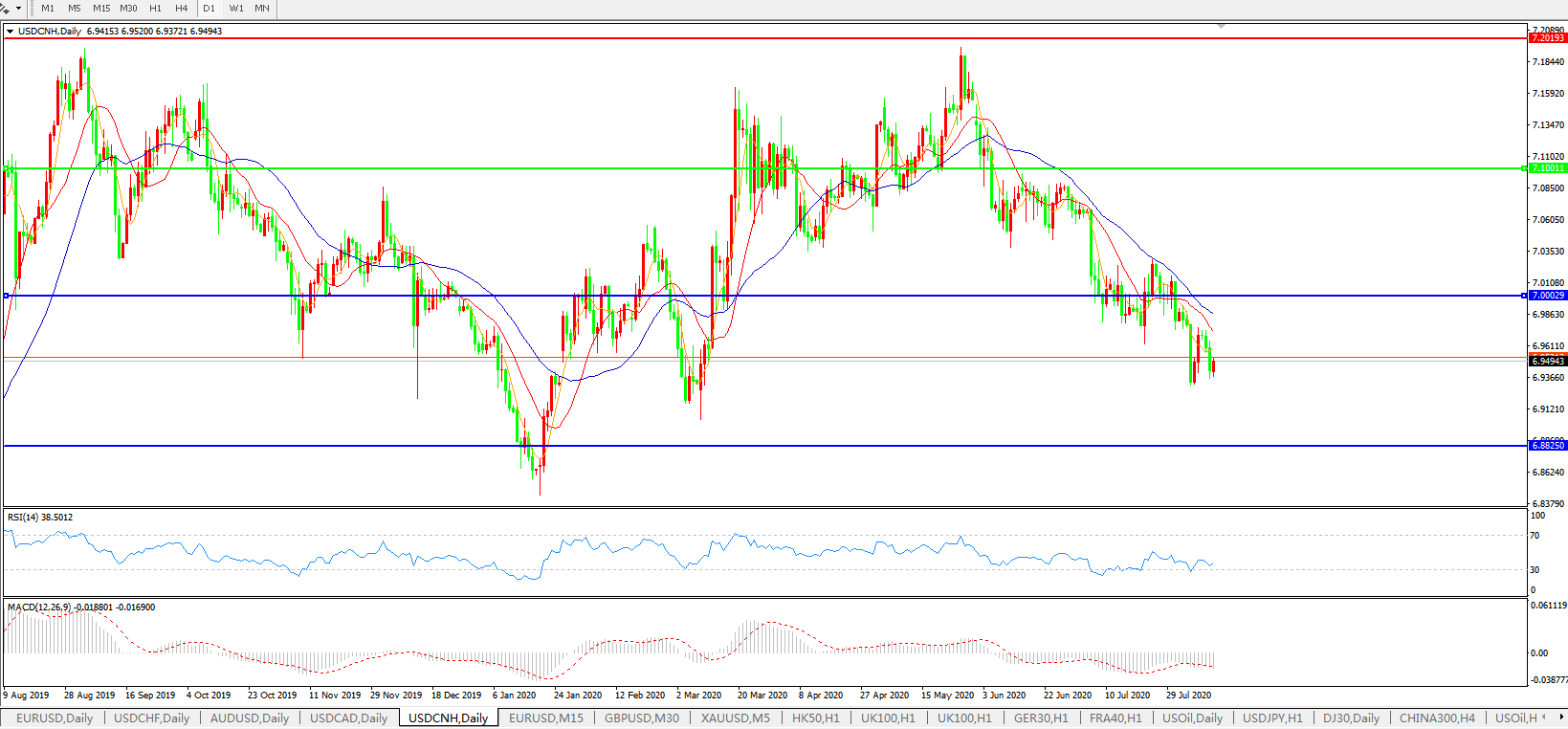 备选策略: 在7.1000之上,看涨,目标价位为7.2000,然后为7.3000。