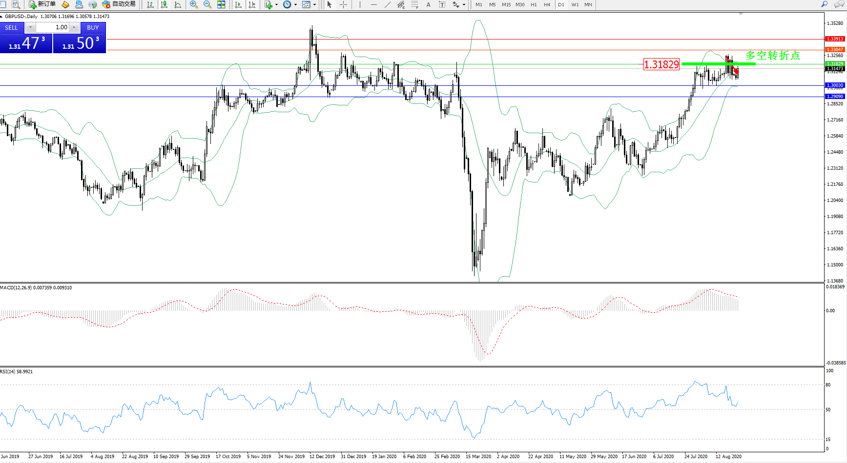 备选策略:1.31829上方看涨,目标1.33047、1.33913