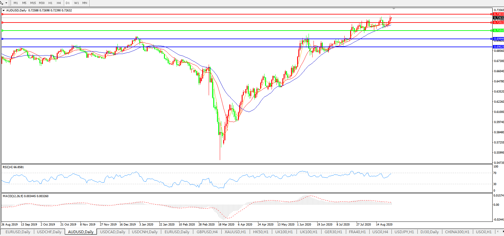 交易策略:0.7100上方看涨,目标0.7200、0.7300