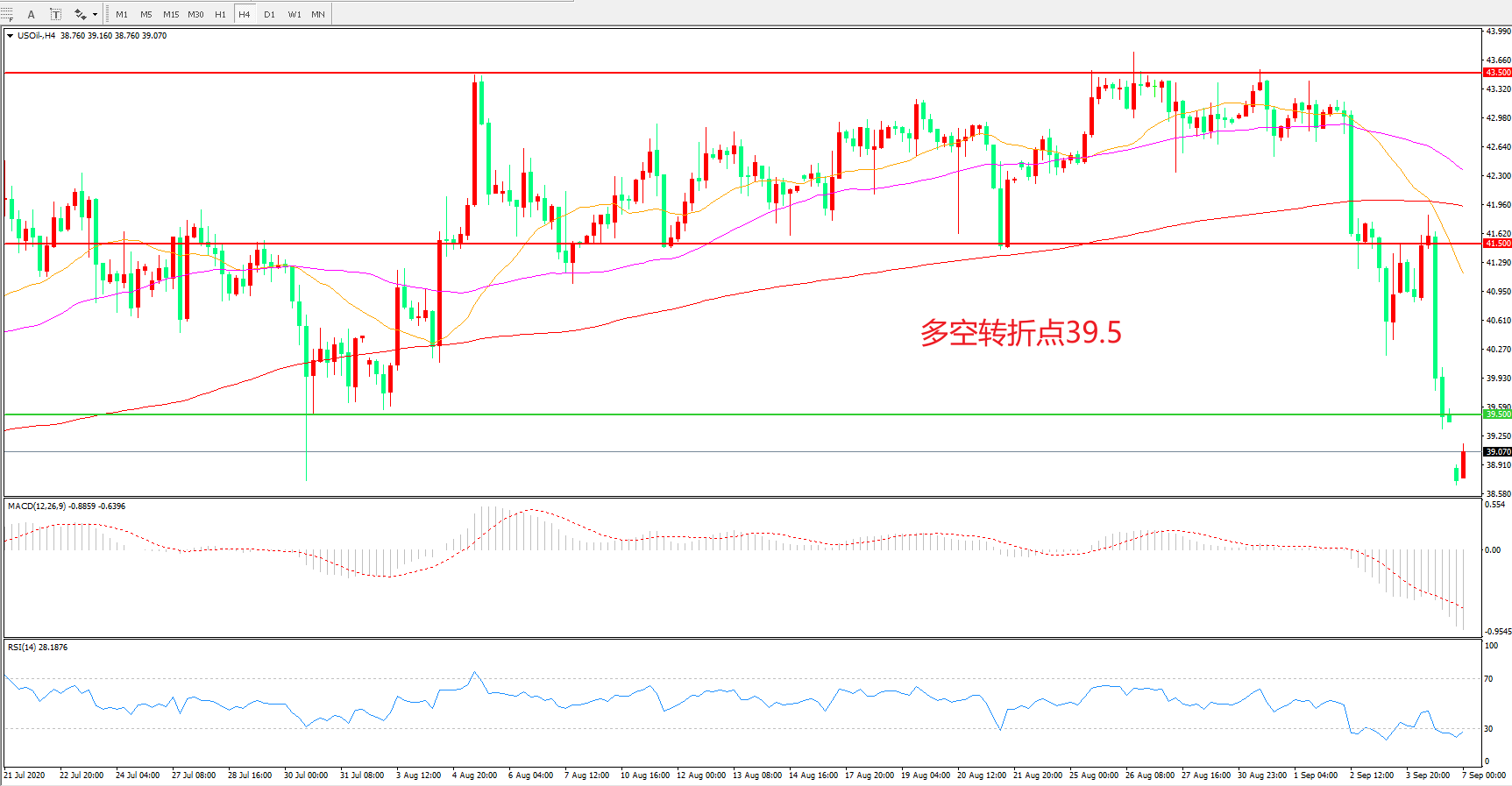 交易策略: 在39.50之下看跌,目标37.00         35.00