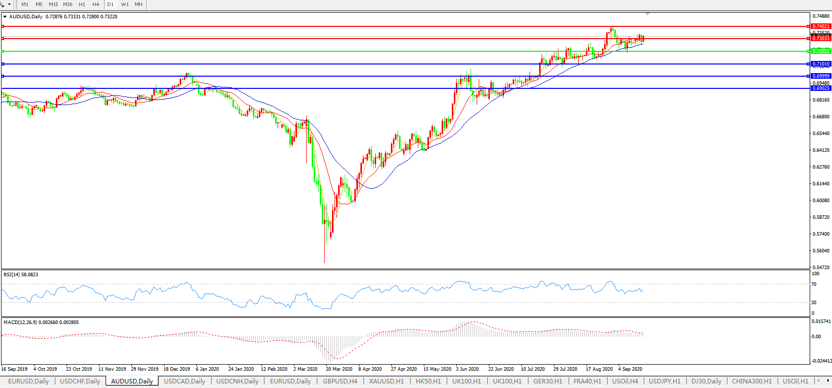 压制位:0.7300 0.7400