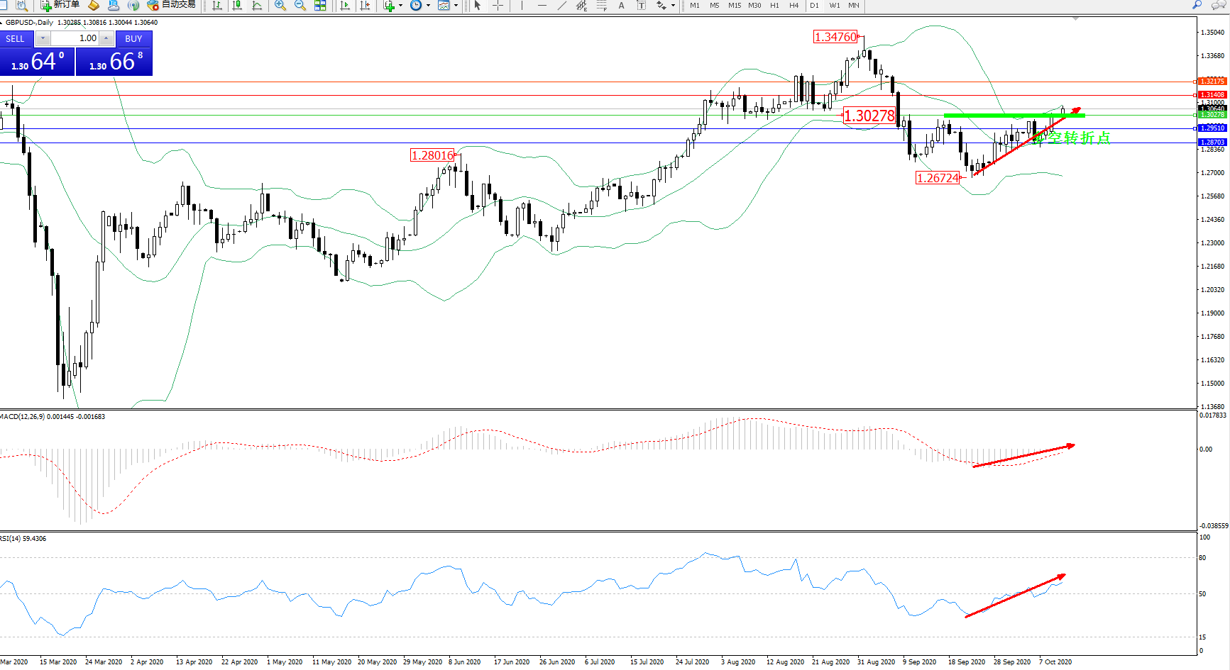 交易策略:1.30278上方看涨,目标1.31408、1.32175