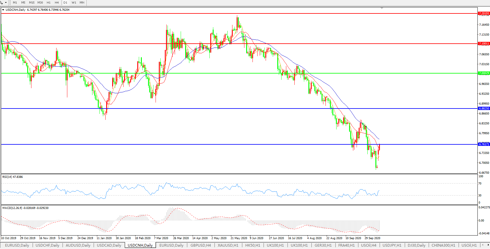 美元兑人民币USDCNH 日线图: