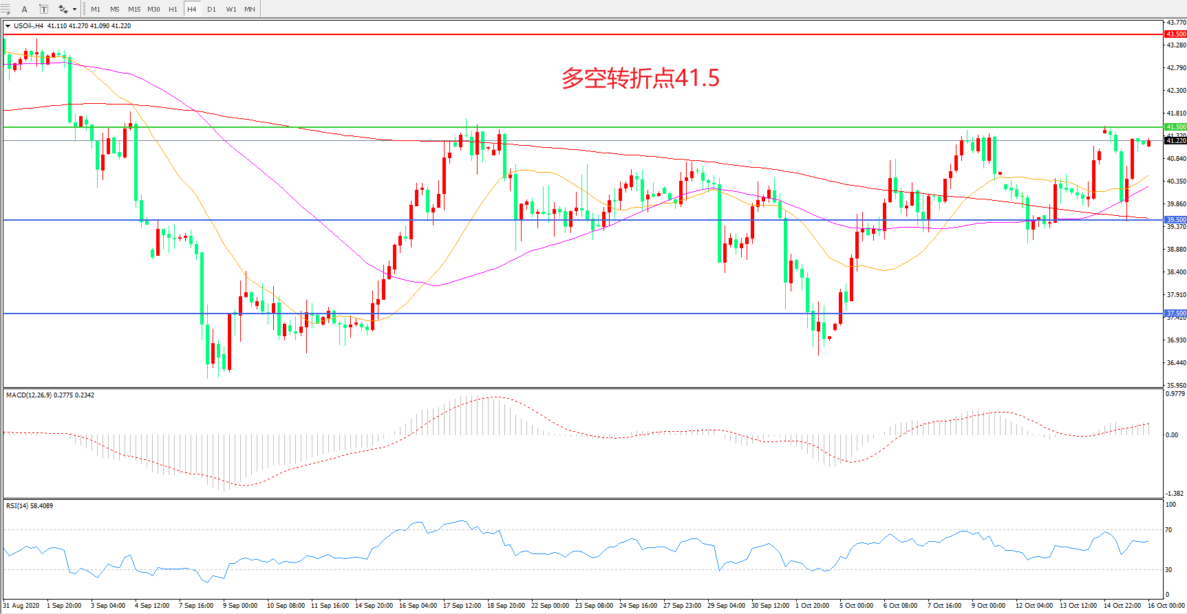 周四(10月15日),原油市场上演深V大反转! 欧洲二次疫情加剧,英法等国防疫举措升级令市场风险情绪恶化,美国WTI原油一度跌超4.4%,但EIA数据表现亮眼,超过市场预期降幅210万桶,市场情绪好转,美油大幅反弹,收报41.21美元/桶。
