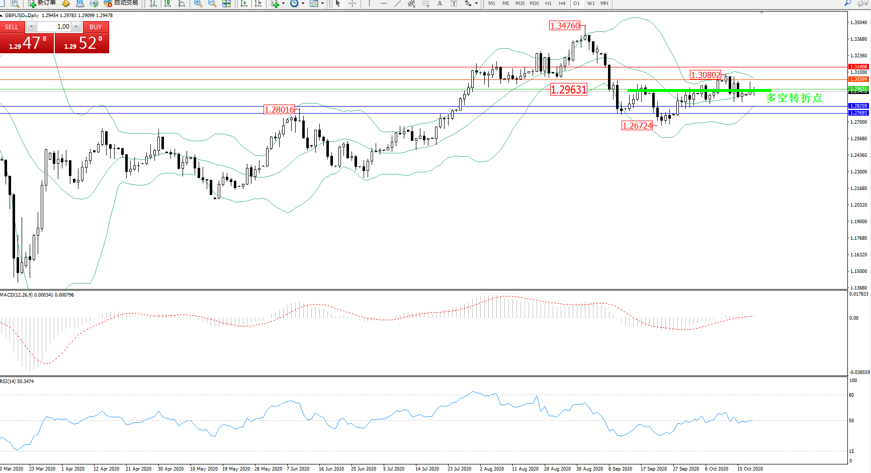 交易策略:1.29631下方看跌,目标1.30399、1.31408