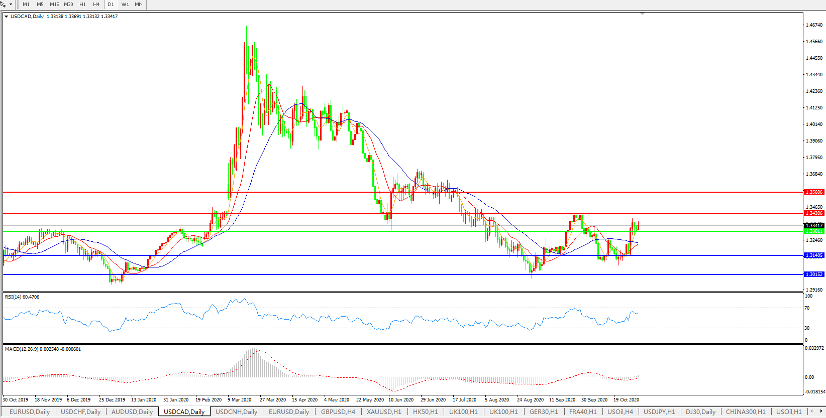 美元兑加元USDCAD 日线图: