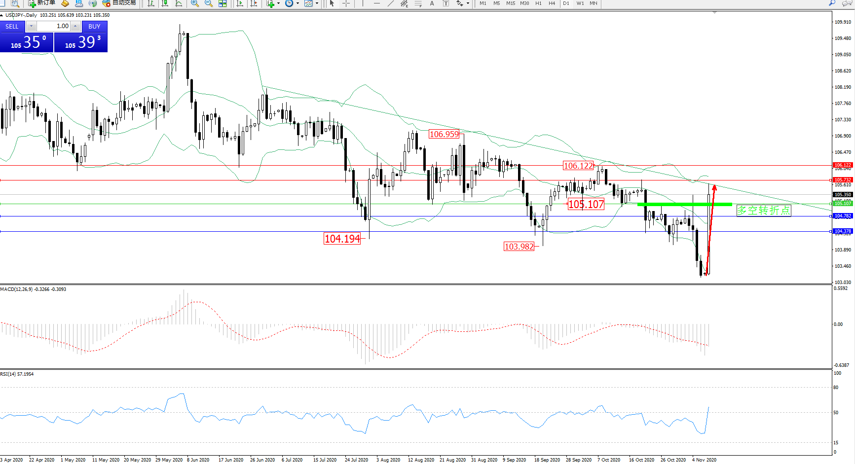 美元兑日圆低位强势拉升至105.350附近震荡,至上周五触及八个月低位103.18之后,周一开盘仍处于相对低迷水平,短线反弹阻力巨大,因美元自身承压以及全球市场多重风险事件消息,都对避险日元构成利多; 一方面,美国现任总统特朗普坚决拒绝承认选举失败,令美国政治前景继续蒙上阴影,朝野两党的对立进一步加剧,也令年内达成财政协议的前景更加黯淡,这反过来将迫使倒逼美联储在之后提前采取额外宽松行动。而另一方面,以欧洲地区为啥,全球疫情还在新一轮的剧烈爆发之中,全球经济前景黯淡的格局难有改观,这意味着避险日元之后相当长时间内仍将是汇市投资者的首选,尤其是地缘风险此后冒头的迹象,可能进一步强化此格局;而日元的具体上行空间,则取决于日本政府及央行的姿态。一旦日本央行表述了明确的采取跟进宽松措施之预期,并强调将会适时入市干预日元汇率。美元指数涨0.57%至92.83,10年期和30年期美国国债收益率达到3月以来最高水平;交易员抛售日元,买入风险较高的货币和美元,市场对经济和世界贸易的信心增强,受新冠疫苗取得进展和拜登赢得美国大选提振。