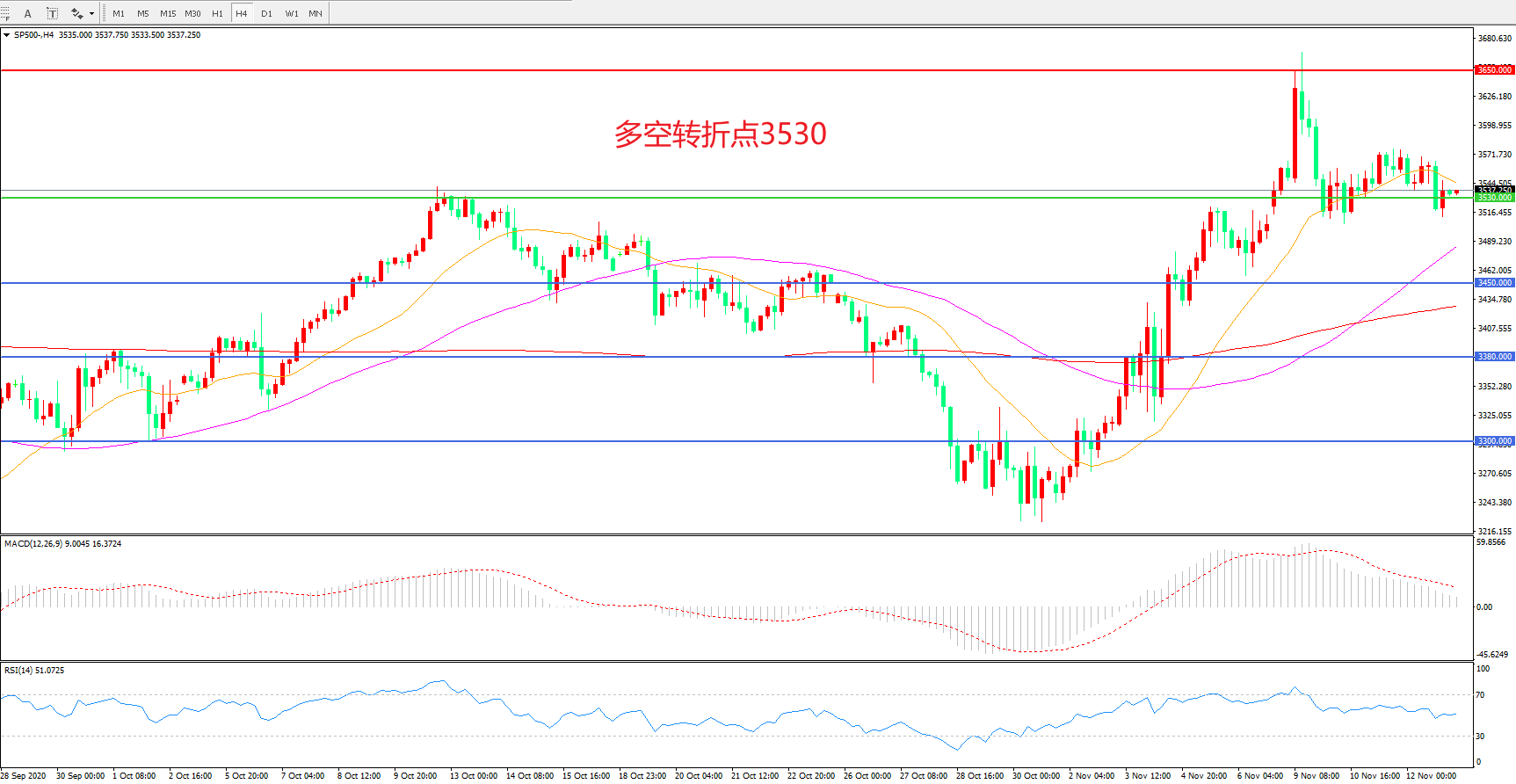 周四(11月12日),美国新冠确诊病例再创新高,疫情恶化之时,两党却仍未有缩小新刺激方案分歧的迹象,标普500震荡下行,收报3538.25点。新的抗疫救助案磋商陷入僵持后一直未能打破僵局,有消息称特朗普政府将退出新刺激谈判,留给参议院共和党领袖麦康奈尔去谈刺激方案,但他和民主党人的新近表态突出表明,两党对新刺激的规模分歧仍很大。