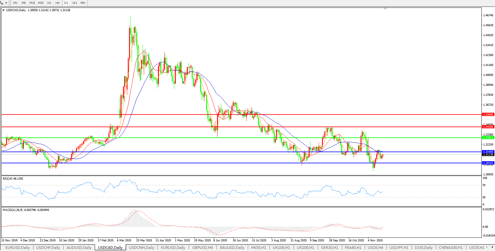 美元兑加元USDCAD 日线图: