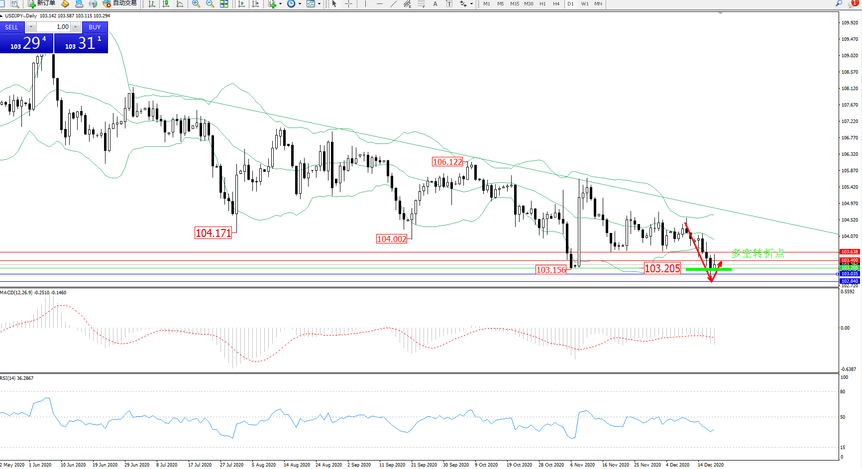备选策略:103.205下方看跌,目标 102.840、103.035