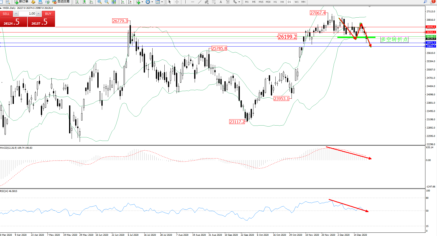 香港恒生指数12月22日(周二)收盘下跌187.43点,跌幅0.71%,报26119.25点;港股整体走势低迷,恒指午后一度跌超1%,恒生科技指数涨0.33%报8186点。恒指公司今日刊发咨询文件,就恒生指数的组成向市场征询意见,探讨如何挑选成份股、成份股数目及成份股权重等五项议题。其中,建议将成份股数目扩大至65只至80只,增加指数整体覆盖率及促使各行业的代表性均能达到一个合理的水平。同时建议取消候选成份股的最少上市时间要求,从而更能适时将具代表性的新上市公司纳入恒生指数。文件亦建议把成份股权重上限由现行的10%降至8%,以降低大型成份股的权重;以及统一现有成份股、同股不同权或第二上市成份股权重上限至8%,主要是考虑到未来将会有更多公司以此形式上市。咨询期将于明年1月24日结束,预计将于明年2月公布有关咨询结果。今日南下资金净流入19.87亿港元,大市成交额为1237.26亿港元。据香港无线新闻,香港特区政府卫生署卫生防护中心12月22日下午表示,香港新增63例新冠肺炎确诊病例,53例本地个案,13例源头不明。