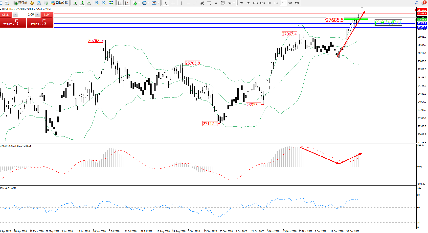 技术点评:多头动力延续布林带指标通道上轨附近持续震荡上扬态势良好,延续上轨附近屡破新高,布林带指标呈张口走势中,且逐渐扩大波幅中,关注上轨附近关键节点,MACD指标处于0轴线线上方多头区域维持整理后强势拉升上扬中,RSI指标处于多头区域高位维持整理上行中;