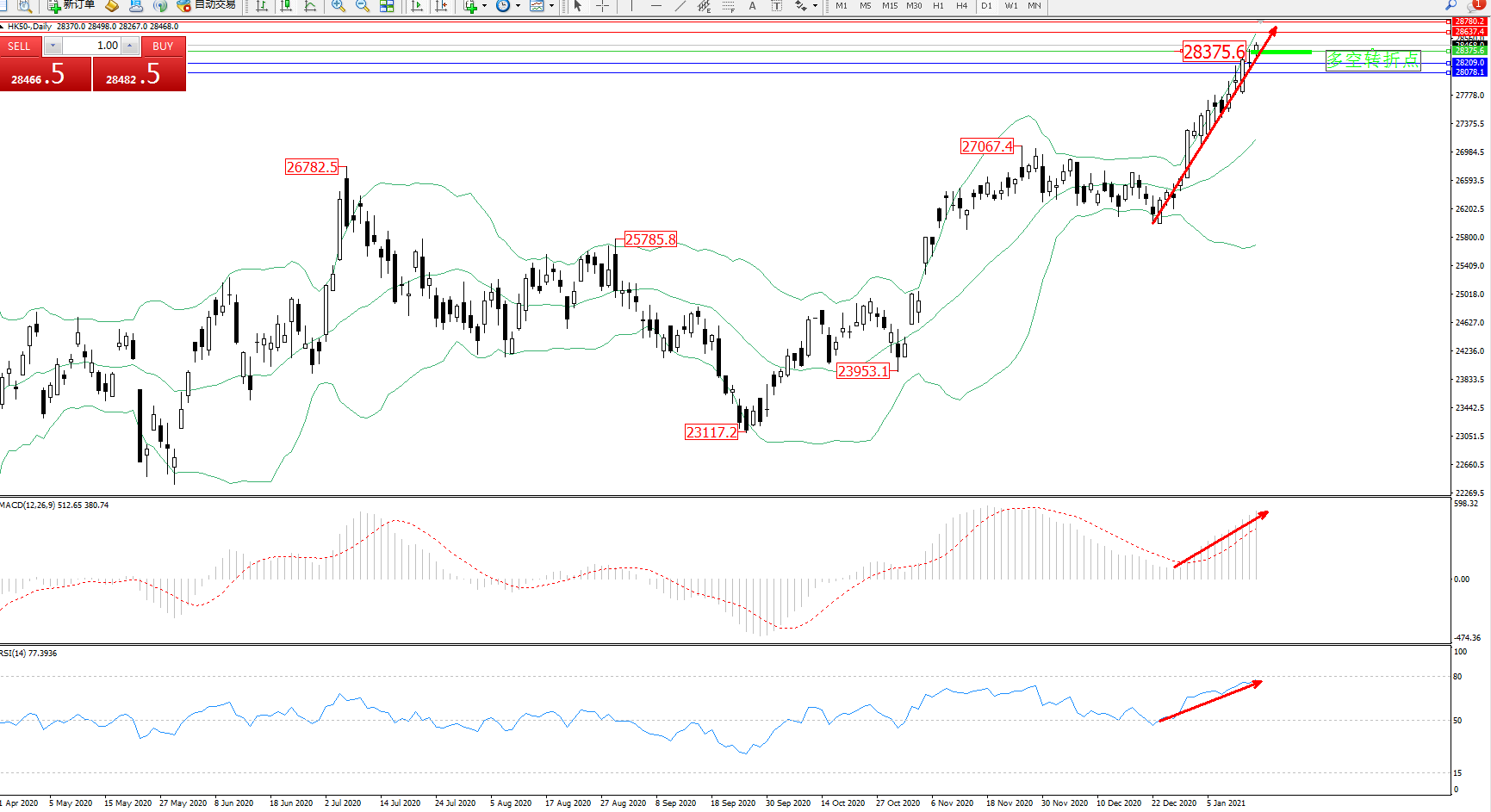 技术点评:多头动力延续布林带指标上轨附近持续震荡上扬态势良好,布林带指标呈张口走势中,多头潜力屡破新高,尚未有止步迹象,关注布林带指标上轨附近关键节点,MACD指标处于0轴线上方多头区域高位持续震荡向上移动中,RSI指标处于多头区域持续震荡上扬后即将触及80均衡线附近节点;