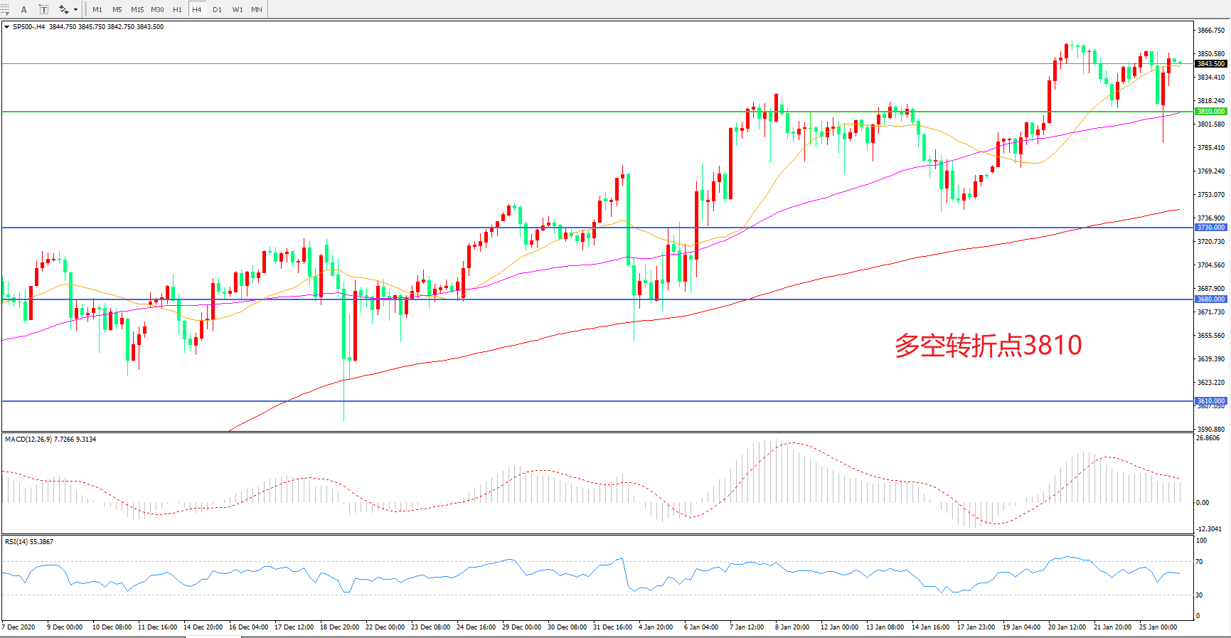 周一(1月25日),疫情担忧和对新一轮刺激计划能否通过的疑虑成为市场的主题,美股险迎“开门黑”,标普500一度大跌后上演V型反转,收报3845.25点。值得注意的是,本周标普500指数中有近四分之一的公司将公布财报,各大公司的财报表现将决定下一阶段的行情趋势。