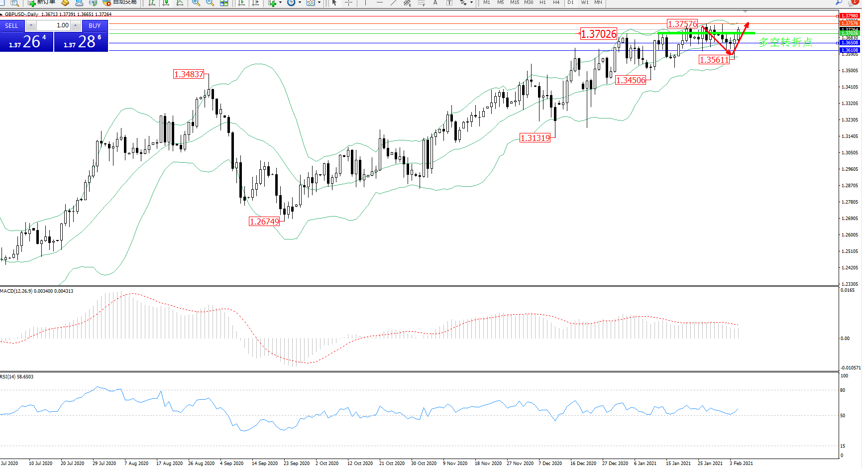 交易策略:1.37026上方看涨,目标1.37576、1.37980