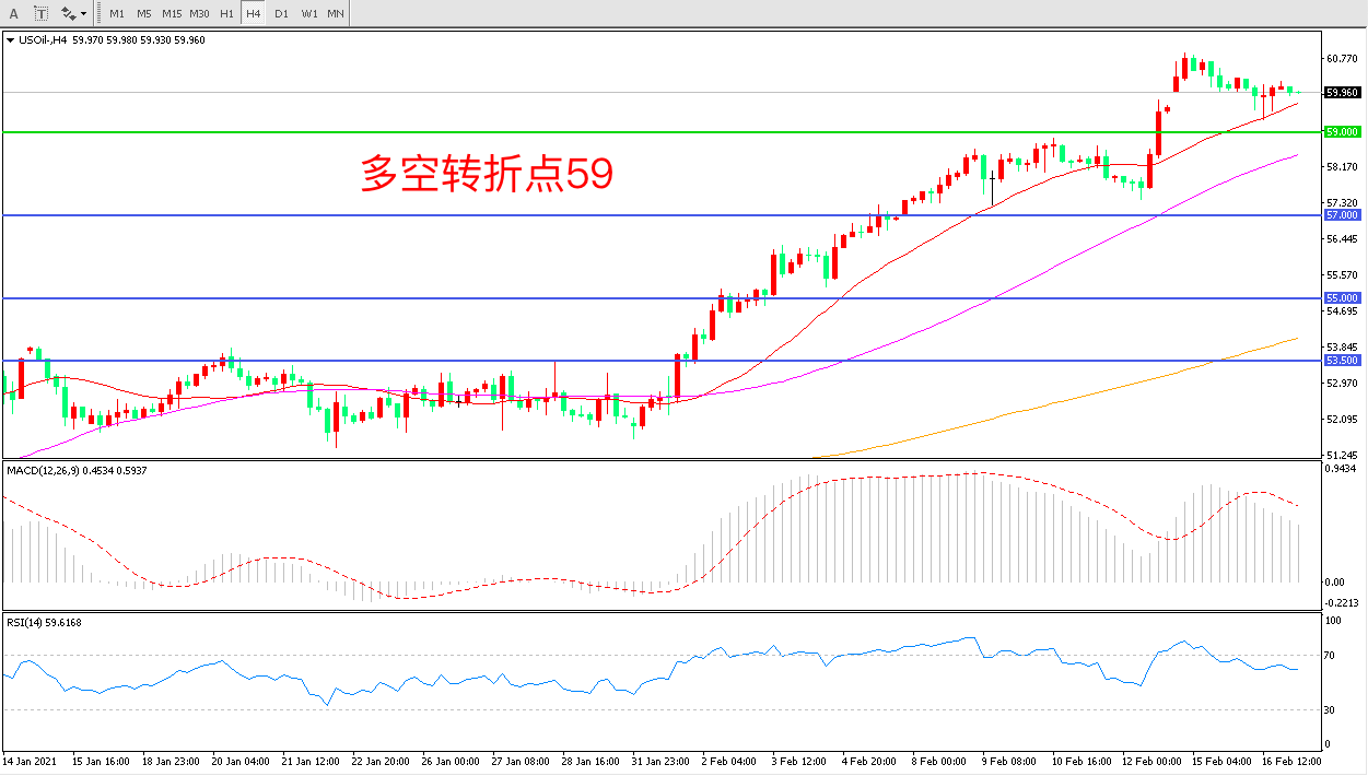 周二(2月16日),历史性的冬季风暴袭击美国,北美最大的炼油厂被迫关闭,市场担忧得州的极端寒冷天气可能导致油井停产和物流问题,或致供应中断,美国WTI原油再度上扬,收报59.92美元/桶。由于市场对美国经济刺激计划将对提振经济及能源需求怀有很大信心,风险情绪氛围良好,刺激原油价格不断走高