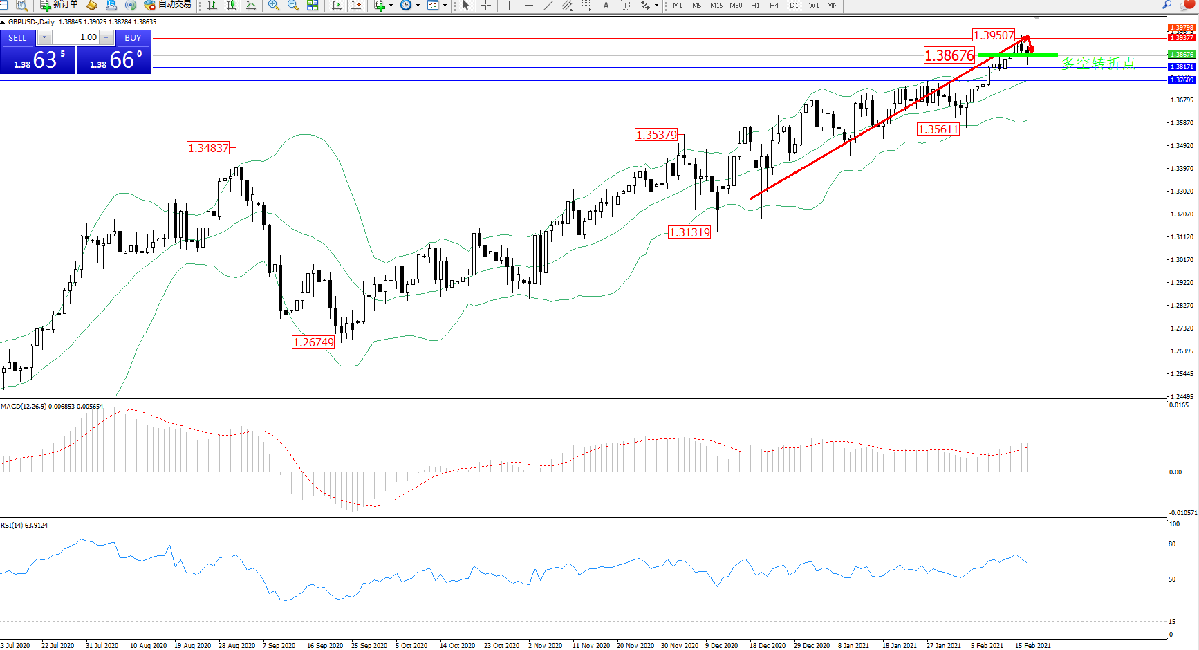 交易策略:1.38676上方看涨,目标1.39377、1.39798