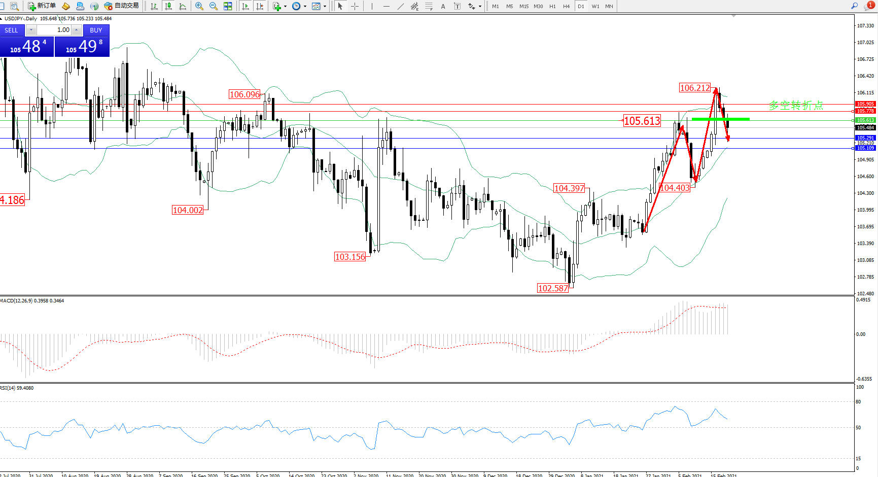 美元兑日圆高位回撤至105.484附近震荡,隔夜美国就业数据意外不佳的状况令市场避险资金重新调转流向,令日元汇价重新得到支撑,市场同时在美国财长耶伦的讲话后对于财政刺激措施和贸易政策前景再度感到失望,这抵消了之前面对疫情恢复前景的乐观情绪。与此同时,大家也反过来对日本方面开始注射疫苗之后的前景寄予更多期望。这令美元兑日元在此前冲上五个月高位后暂时步入了短线回调周期。更大尺度回调行情的重启和全球避险资金流向的再度反转。而美、欧、日之间经济基本面状况的对比,也将是决定下一步汇市动向的关键。日本汽车零部件巨头“曙光制动器工业公司”近日公布,其产品质检数据中有11万多项存在篡改等造假行为。大约有5000项没有达到与汽车厂商约定的标准值。曙光制动器还公布,造假行为至少可以追溯到2001年,时间跨度长达20年左右。
