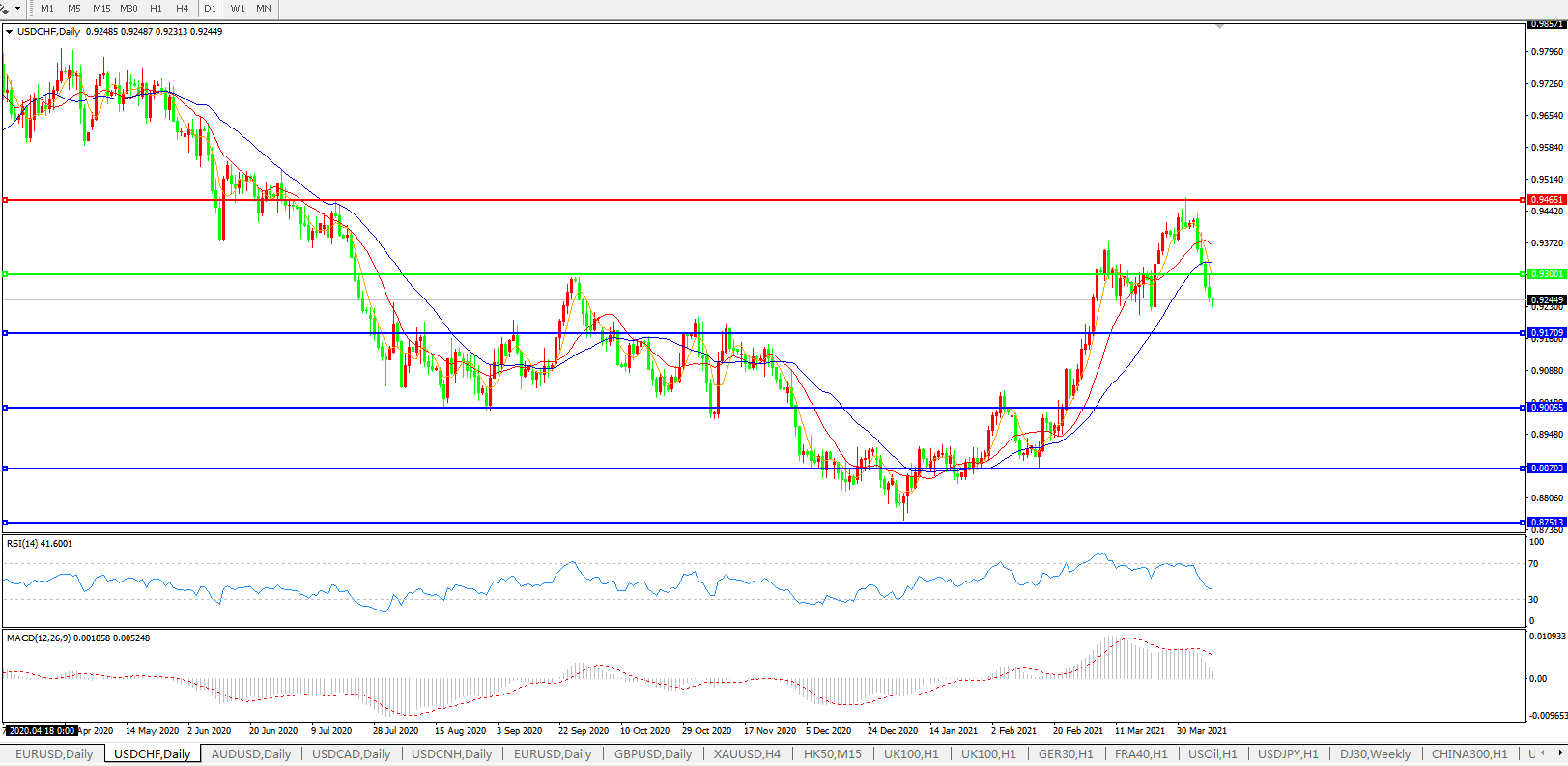 美元兑瑞郎USDCHF    日线图: