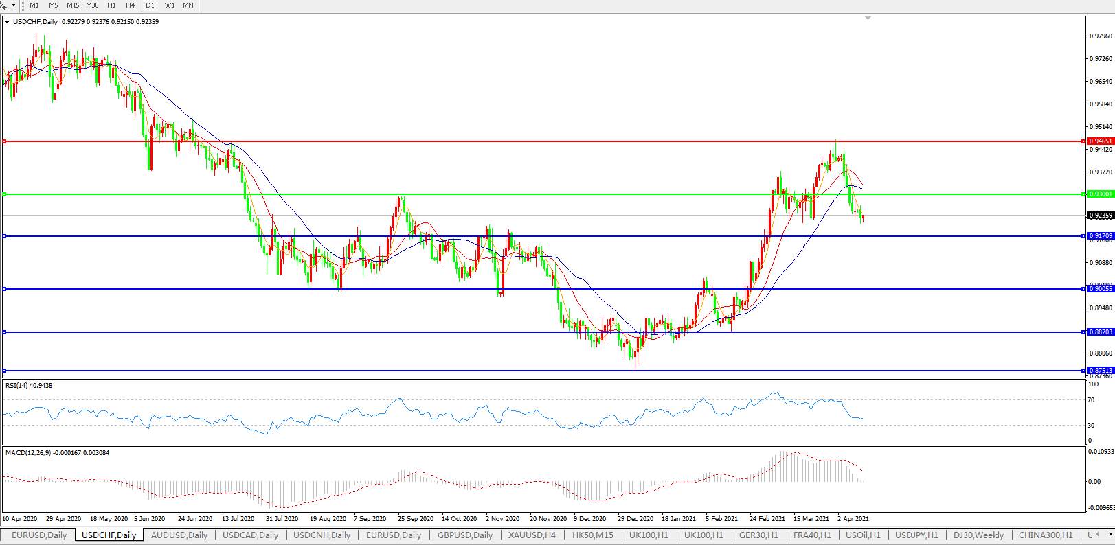 美元兑瑞郎USDCHF    日线图: