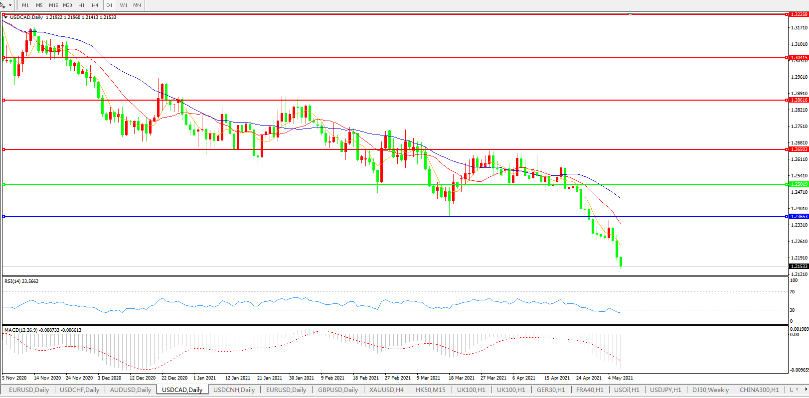 美元兑加元大跌0.96%至1.2149,触及三年半新低,受助于油价上涨和加拿大央行近期转向更为鹰派的指引。Bregar说:“加元继续从基本面和技术上都处于有利地位,如果你观察市场间的相关性,就会发现这是一个难以阻挡的趋势。”。