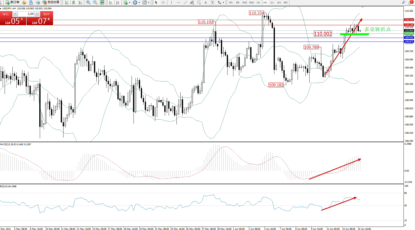 技术点评:多头动力延续布林带指标上轨附近节点不断拉升上扬开始整理,前期高位110.334位置近在咫尺破位在即,布林带指标呈张口走势良好,MACD指标处于多头区域不断拉升上扬后开始平移,RSI指标处于多头区域持续向上移动后整理;