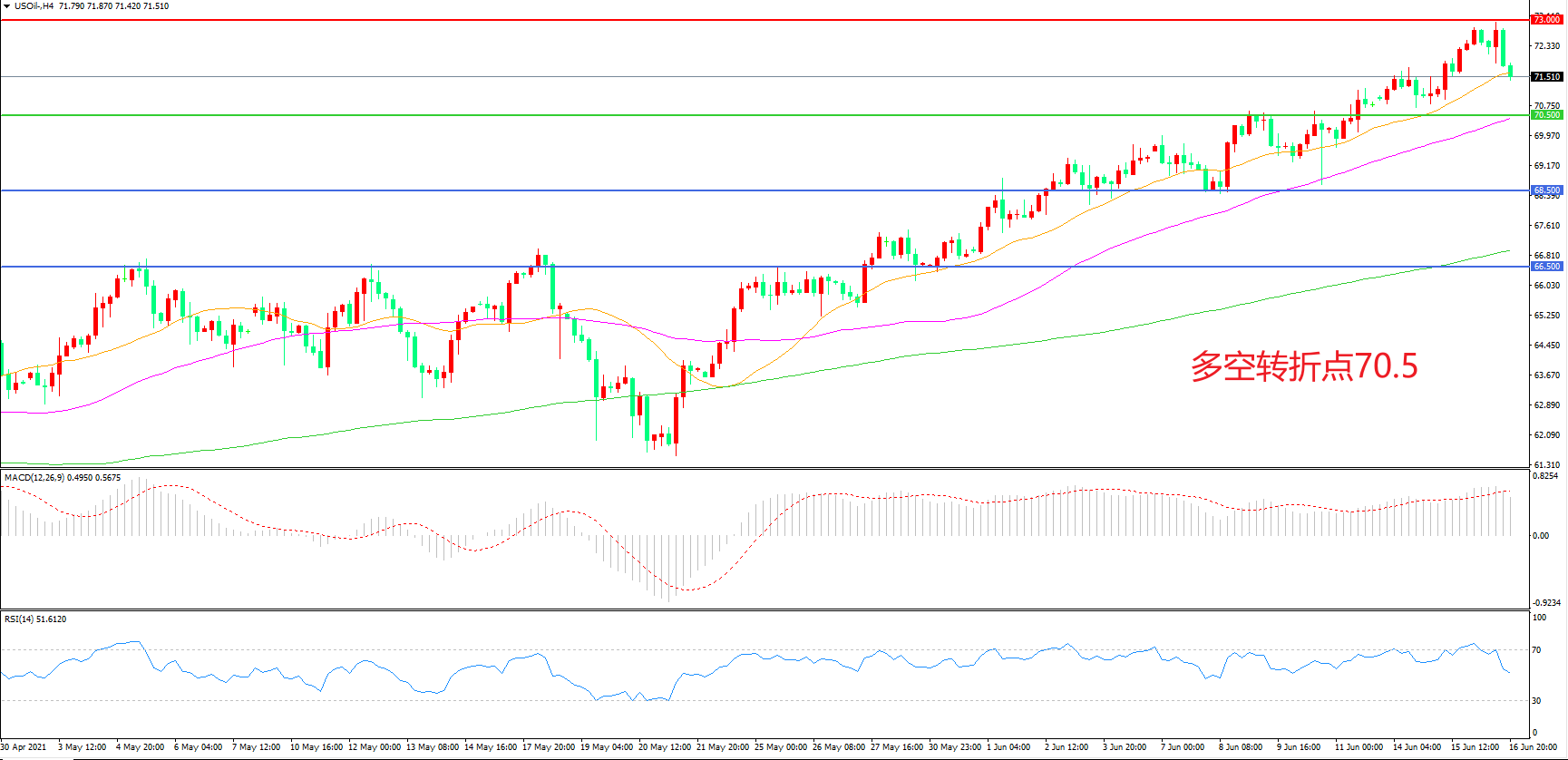 交易策略:在70.50之上看涨,目标73.00 75.00