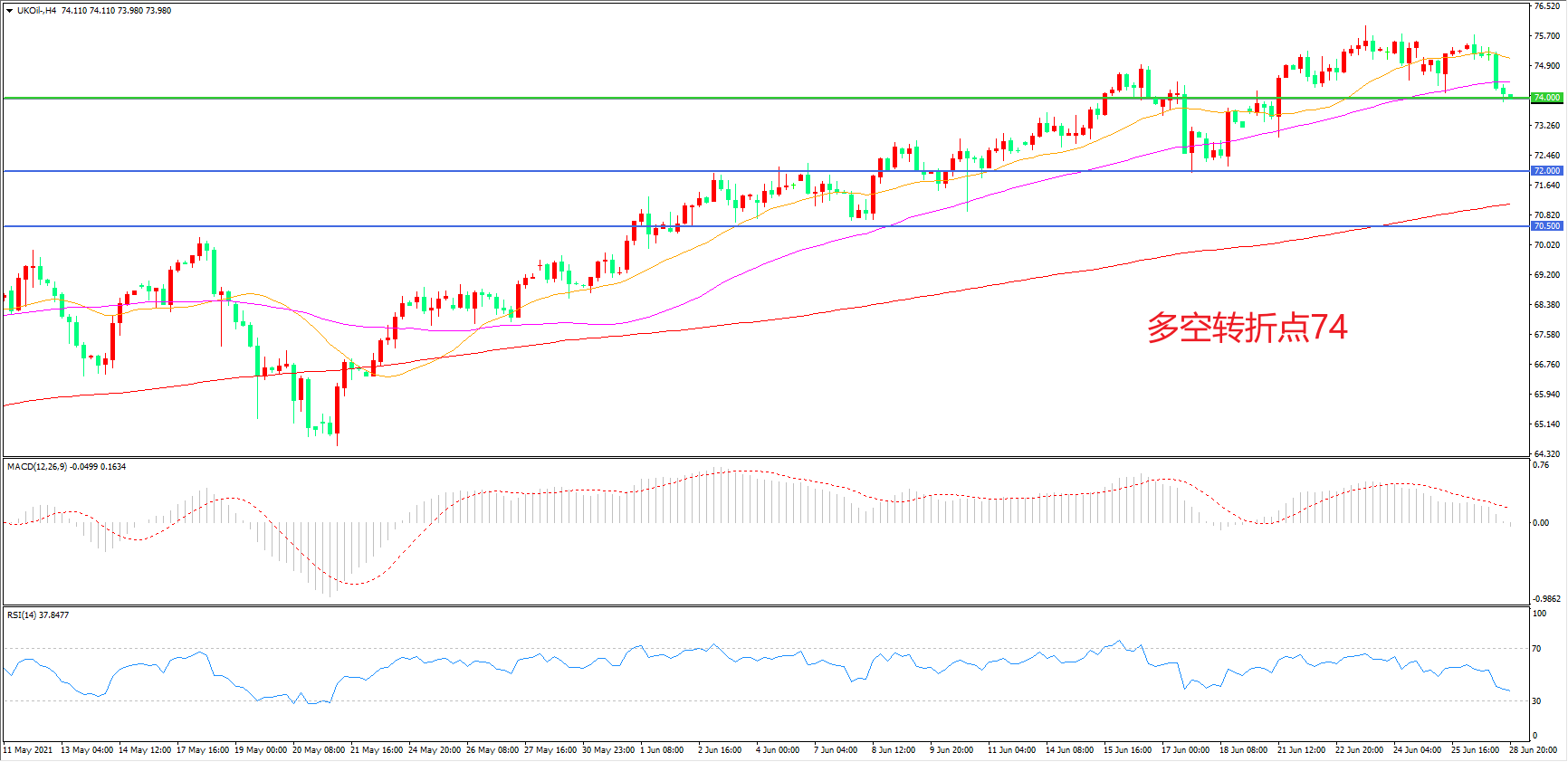 多空转折点:74.00