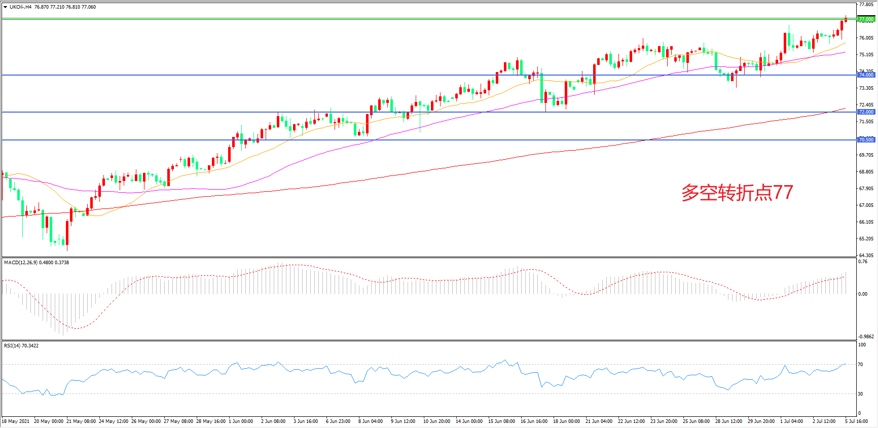 多空转折点:77.00