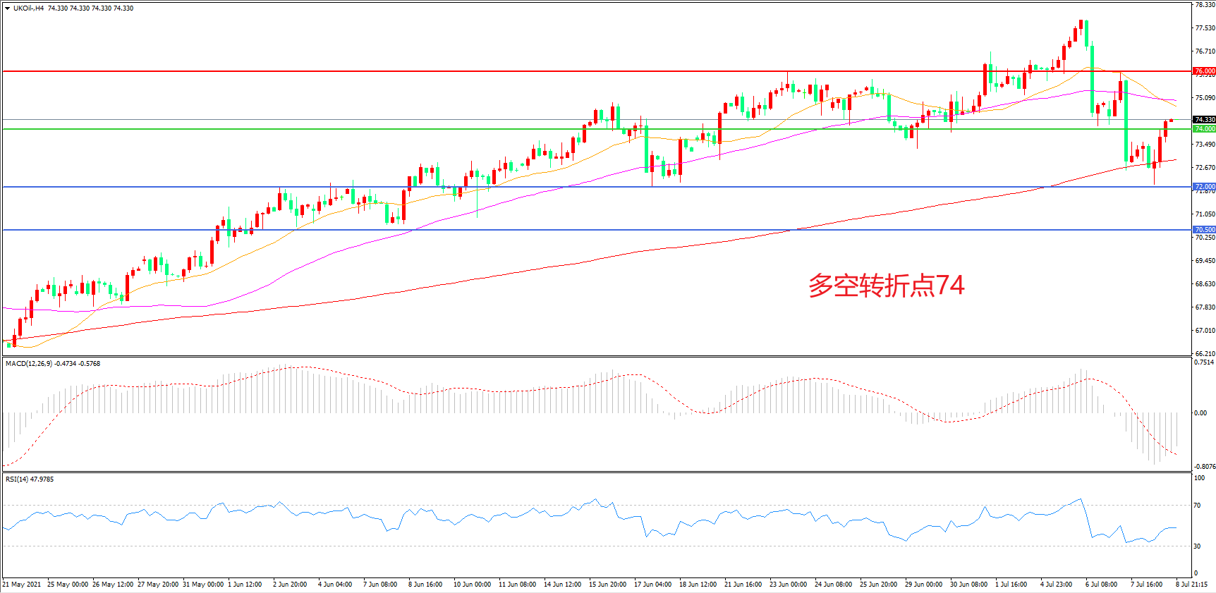 多空转折点:74.00