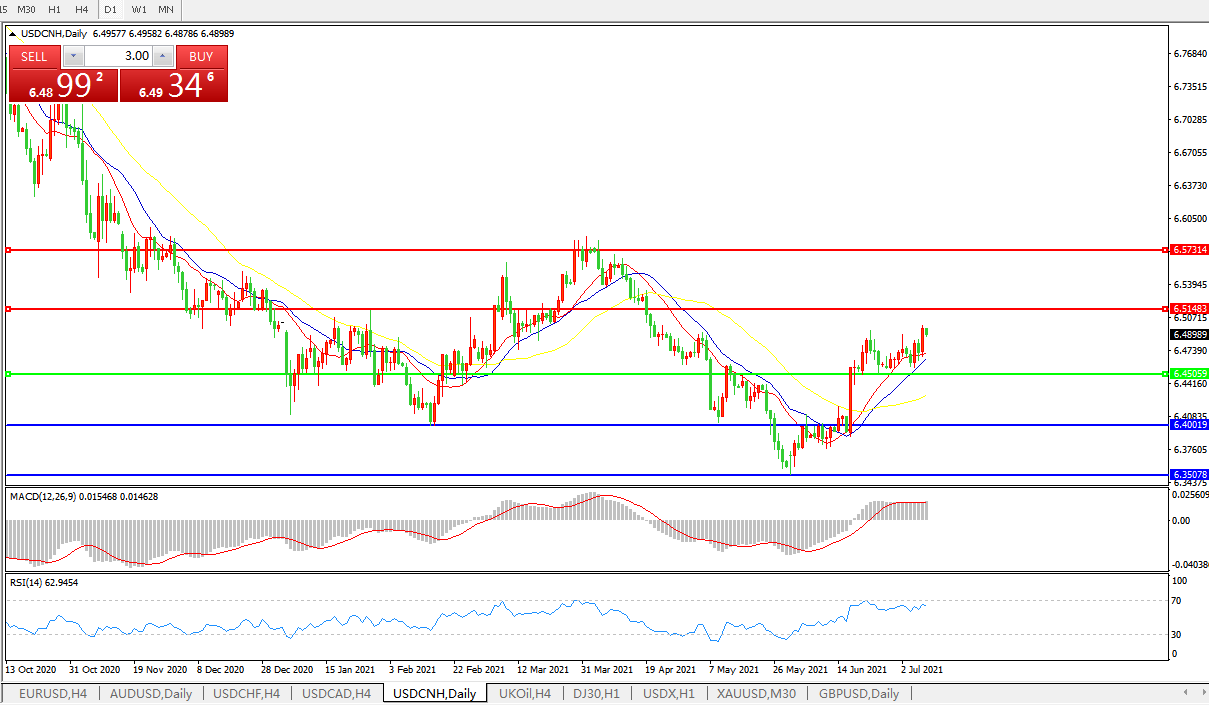 交易策略: 在6.4505之上,看涨,目标价位为6.5150,然后为6.5730。