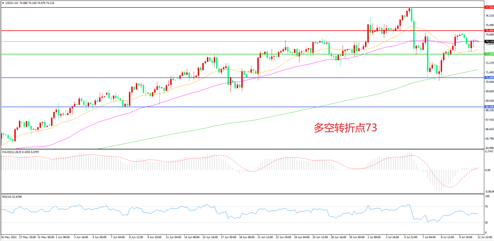 交易策略:在73.00之上看涨,目标75.00              77.00