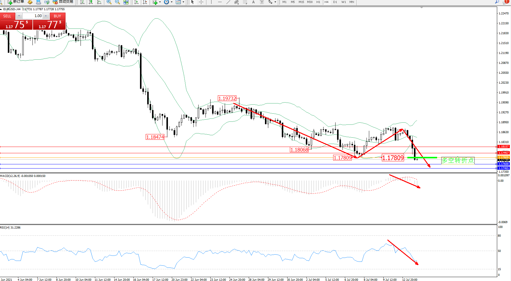 交易策略:1.17809下方看跌,目标1.17600、1.17465