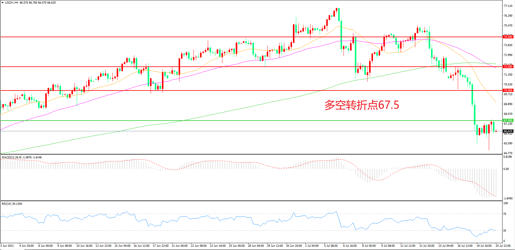 周二(7月20日),由于OPEC多个产油国调增了产量总基准线,由此引发供应端偏紧的优势快速丧失,未来原油产量供应增长已经势不可挡, 美国WTI原油延续弱势表现,收报66.62美元/桶。随着时间来到7月下旬,参照2014—2020年美国炼厂开工率表现发现,后期炼厂开工率继续大幅增长的空间非常有限,周三(7月21日),当周API原油库存增加80.6万桶,汽油库存暴增330.7万桶,远超市场预期值,如果晚间EIA表现与此一致,油价可能开启新一轮的下跌。