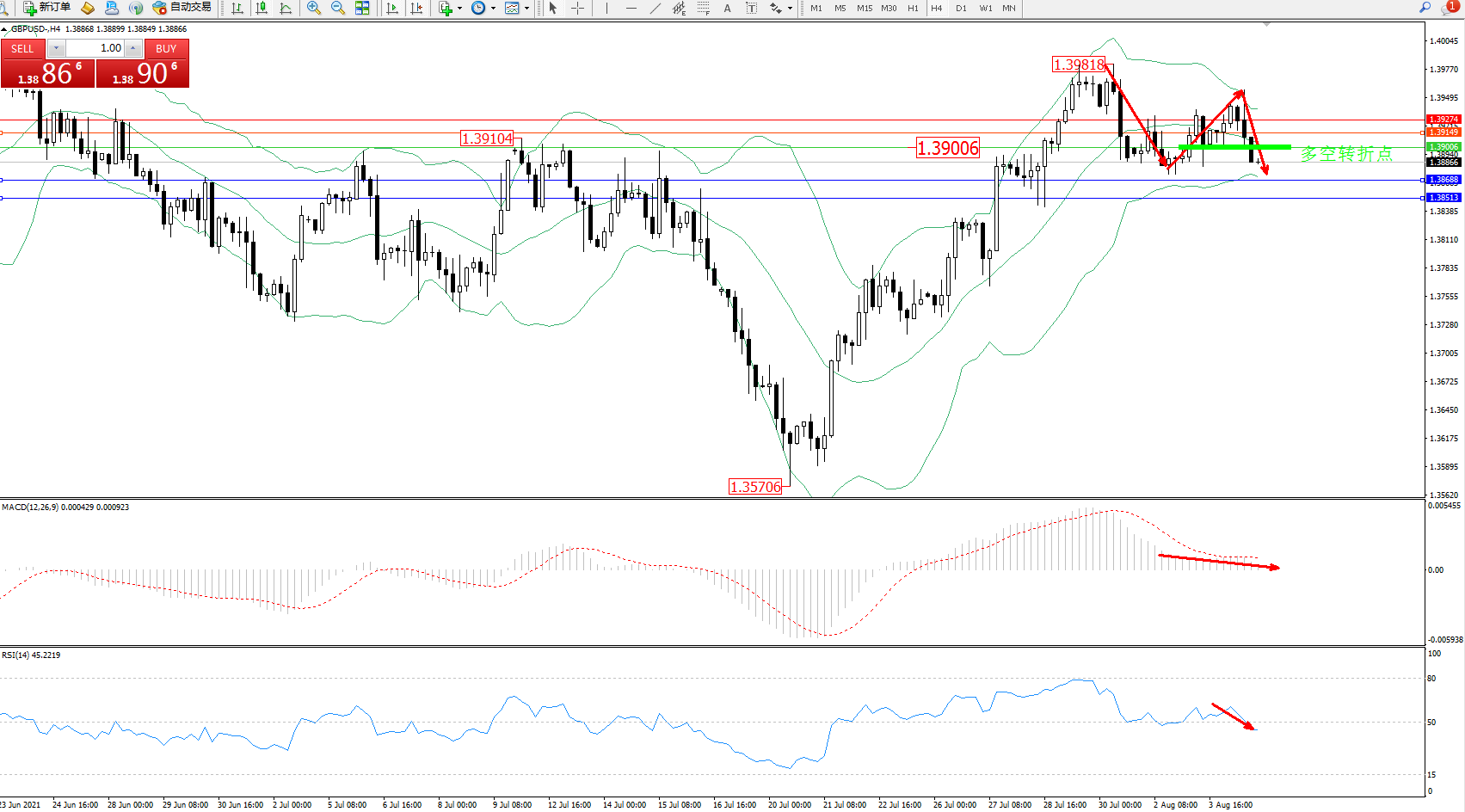 交易策略:1.39006下方看跌,目标1.38688、1.38513