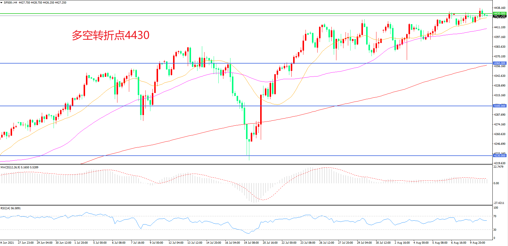 多空转折点:4430.00