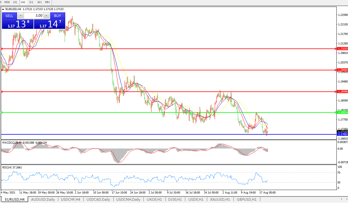 交易策略:1.1800下方看跌,目标1.1700、1.1600
