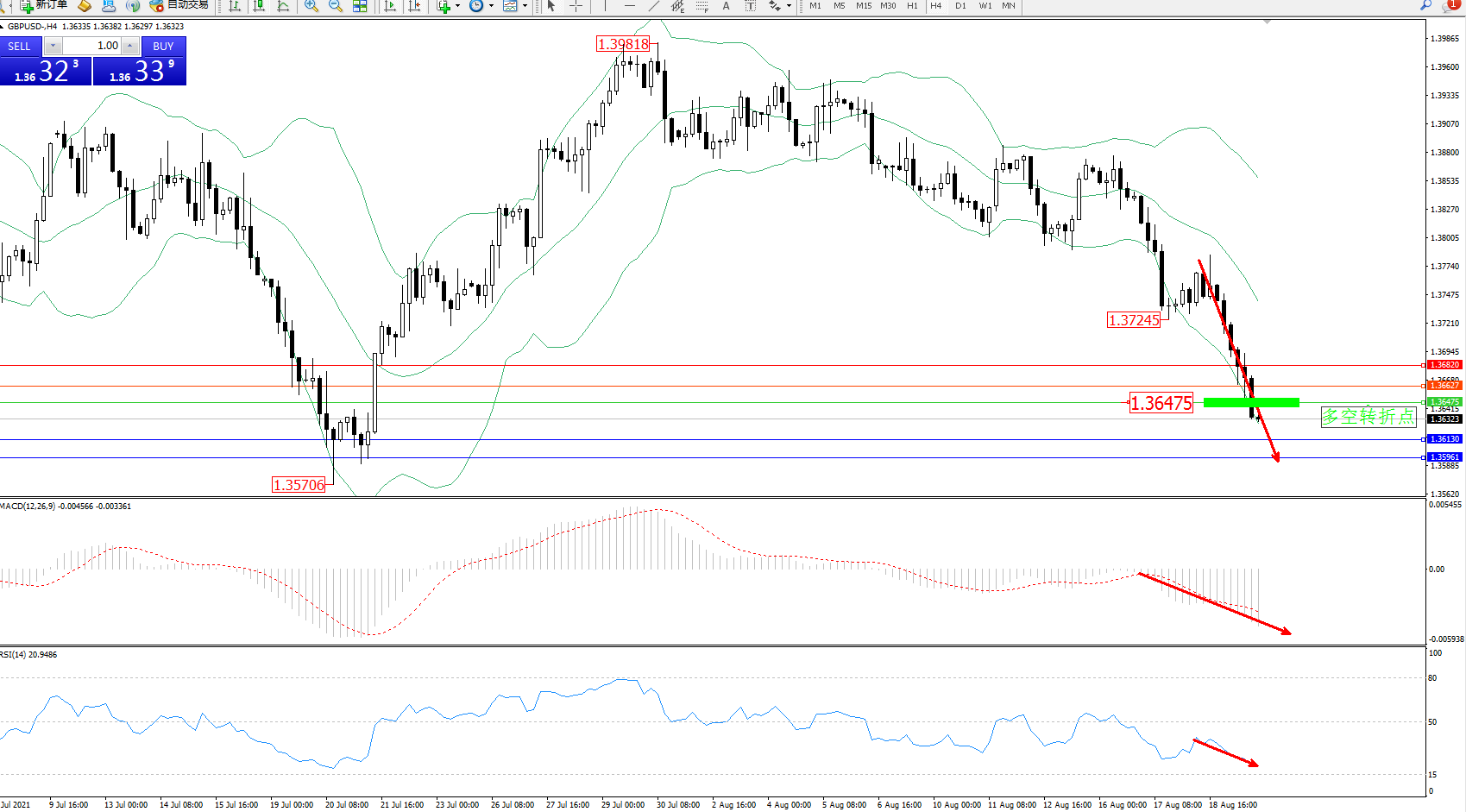 交易策略:1.36475下方看跌,目标1.36130、1.35961
