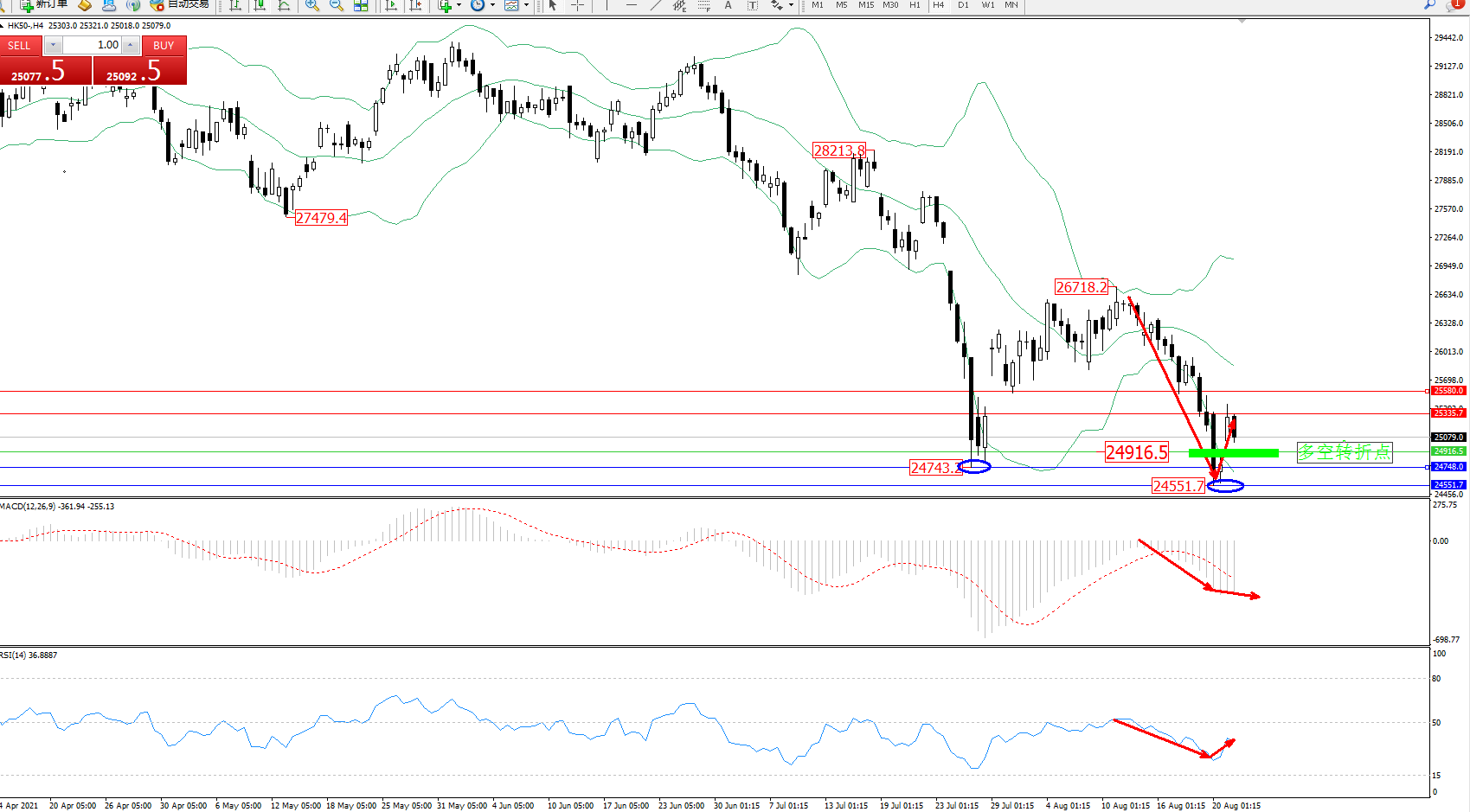 技术点评:空头动力突破前期低位后得到支撑开始V型反转上移,但下行趋势依旧,短期或维持低位震荡中,布林带指标呈张口走势后开始缓慢收口,MACD指标处于空头区域持续震荡下行后开始平移,RSI指标处于空头区域低位震荡下行后开始急速回升;
