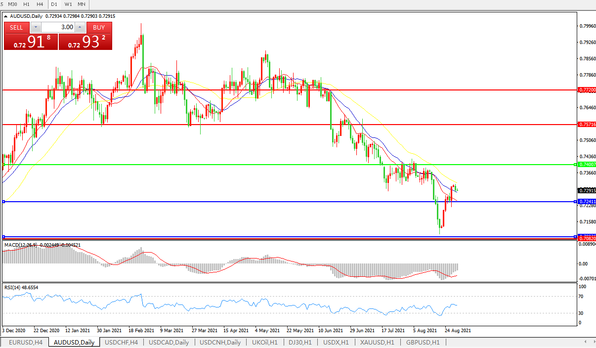 交易策略:0.7400下方看跌,目标0.7240、0.7080