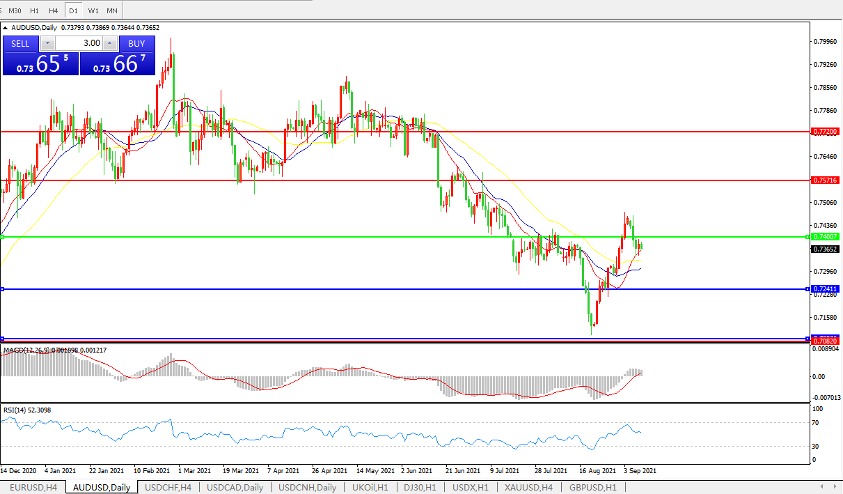 交易策略:0.7400下方看跌,目标0.7240、0.7080