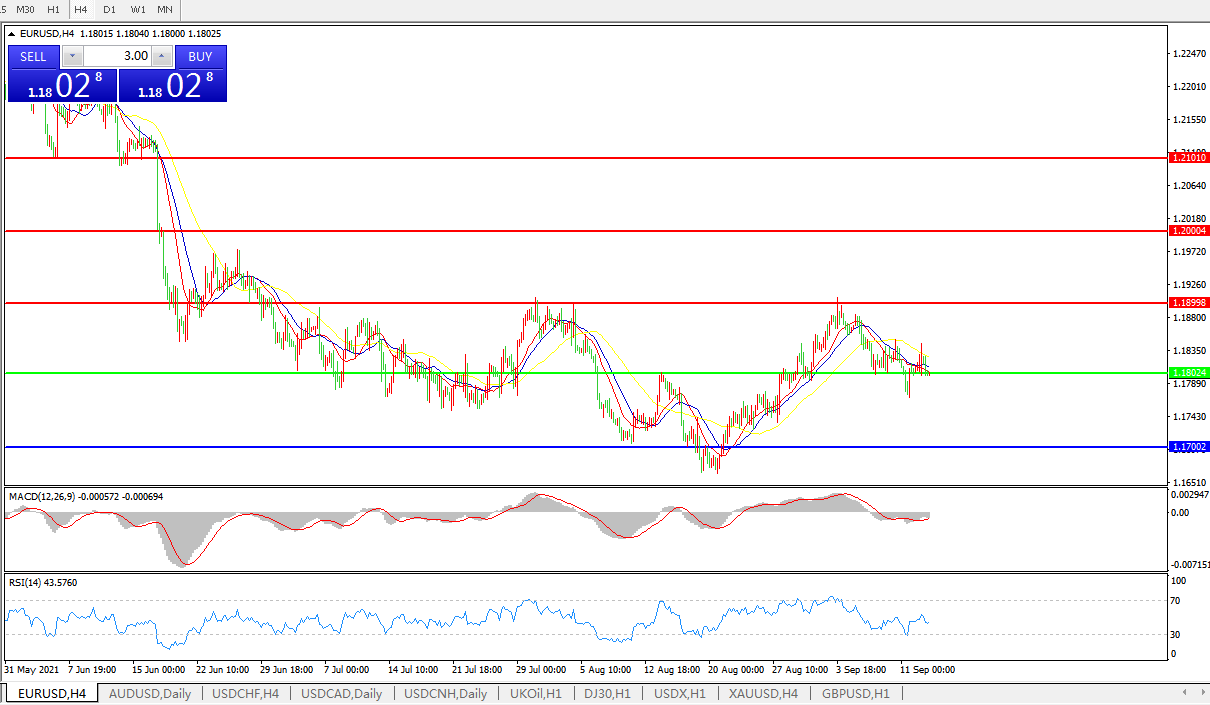 备选策略:1.1800下方看跌,目标1.1700、1.1600