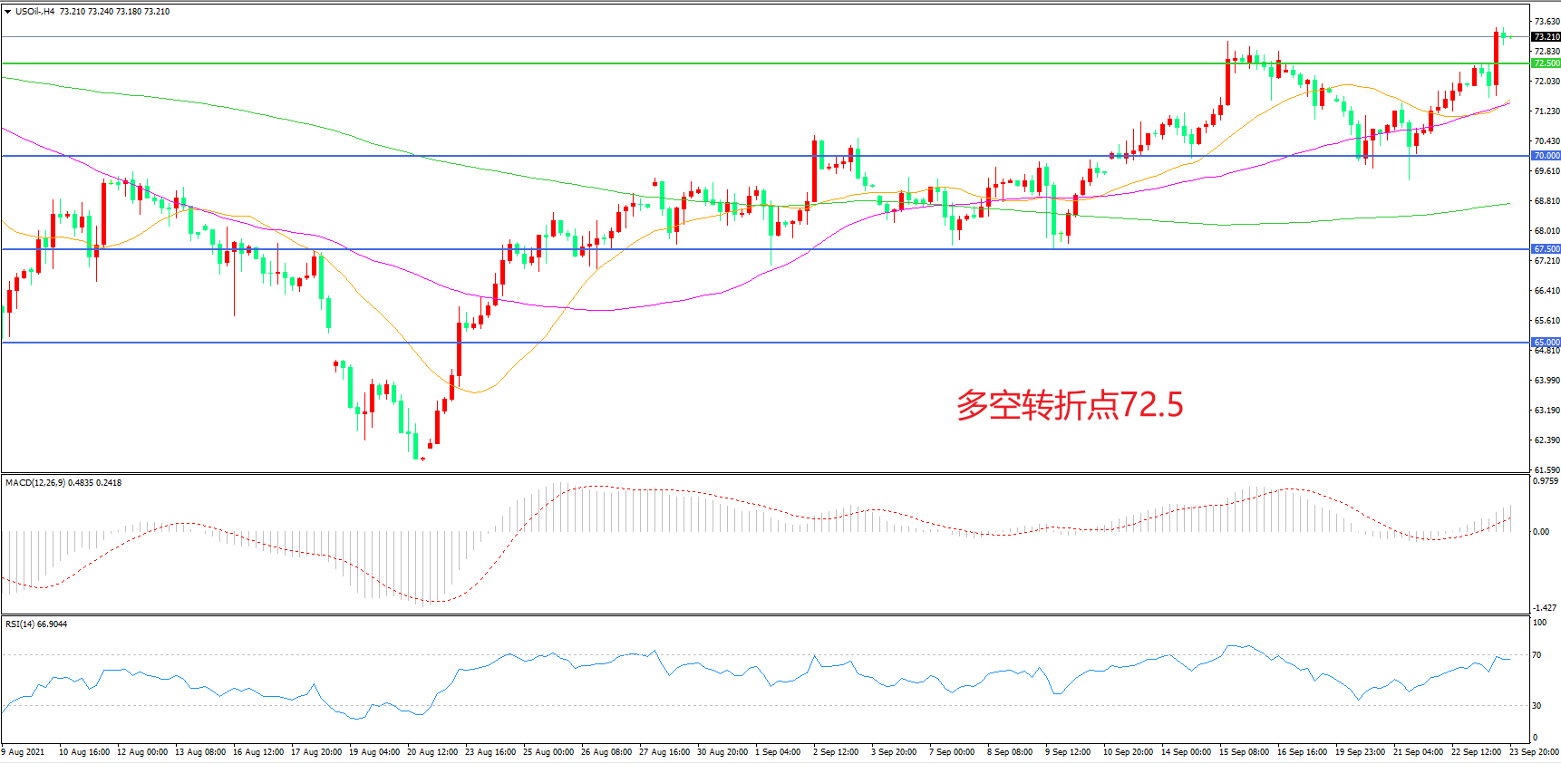 交易策略:在72.50之上看涨,目标77.00 80.00
