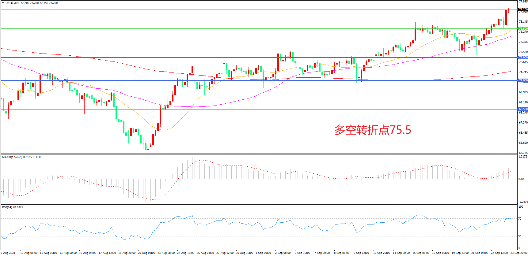 交易策略:在75.50之上看涨,目标78.00 80.00