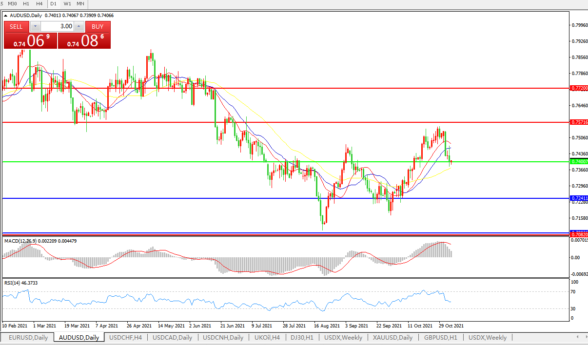 交易策略:0.7400下方看跌,目标0.7240、0.7080