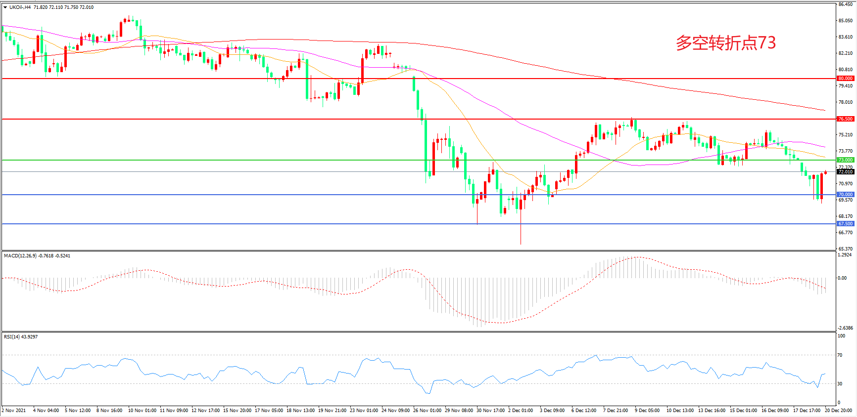 周一(12月20日),为应对奥密克戎变异毒株的快速传播,欧美国家纷纷采取封锁措施,布伦特原油大幅下跌后反弹,收报72.00美元/桶。由于持有关键票的民主党参议员乔·曼钦再次明确表示将反对支持拜登的“重建美好”法案可能导致该法案最终无法被通过,叠加圣诞季来临之前奥密克戎的冲击下,市场的悲观情绪可能开始蔓延。