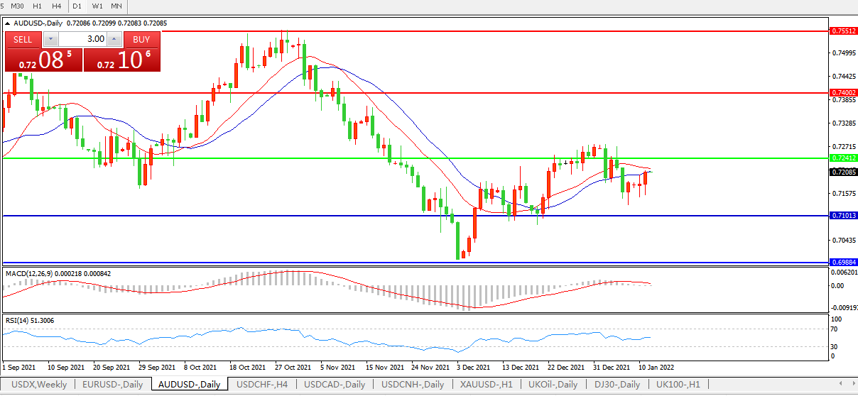 备选策略:0.7240上方看涨,目标0.7400、0.7550